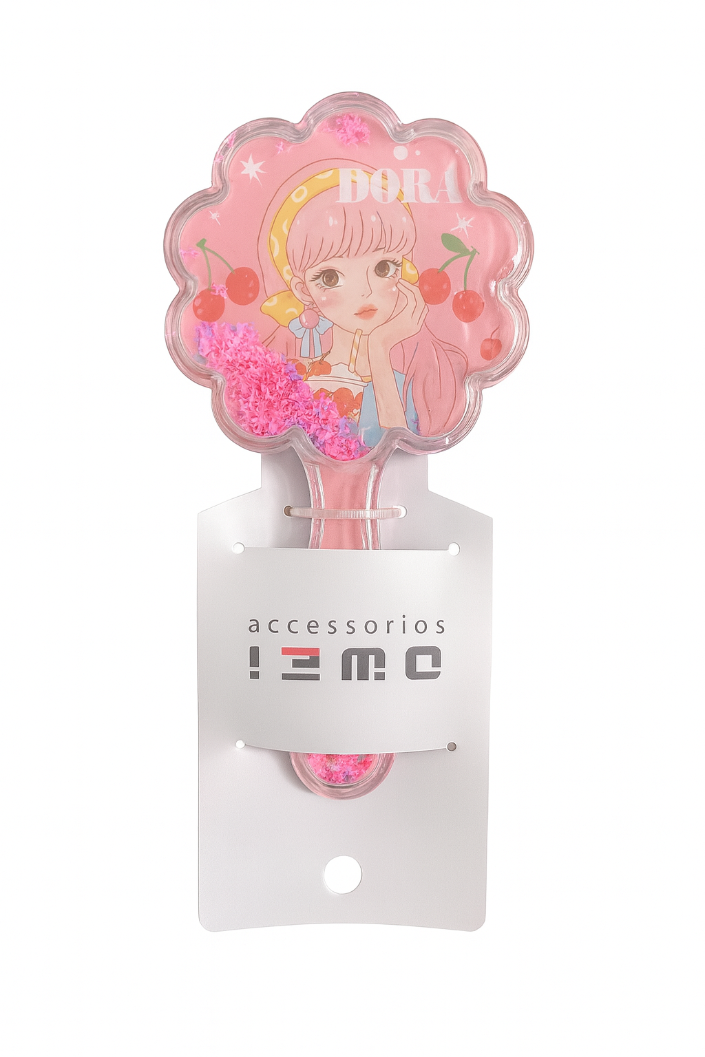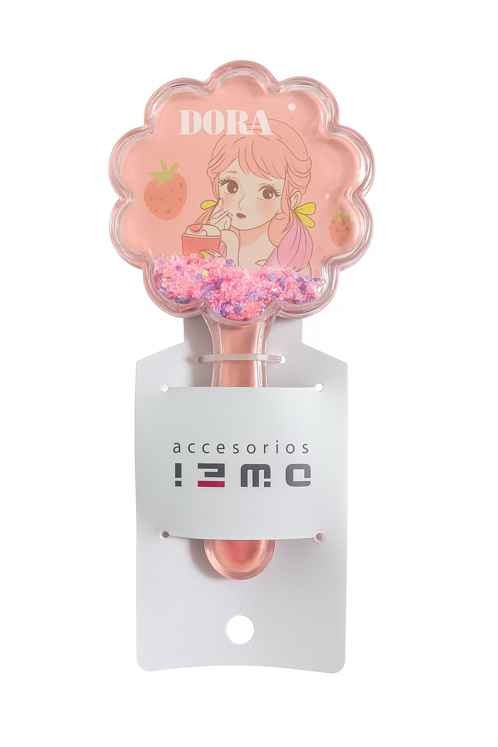 Divertido set de cepillo o peine infantil con diseño de la colección “Dora Glitter Star”. Cada pieza presenta un encantador dibujo de niña con purpurina flotante en el mango, ideal para hacer del momento del peinado una experiencia mágica y alegre.