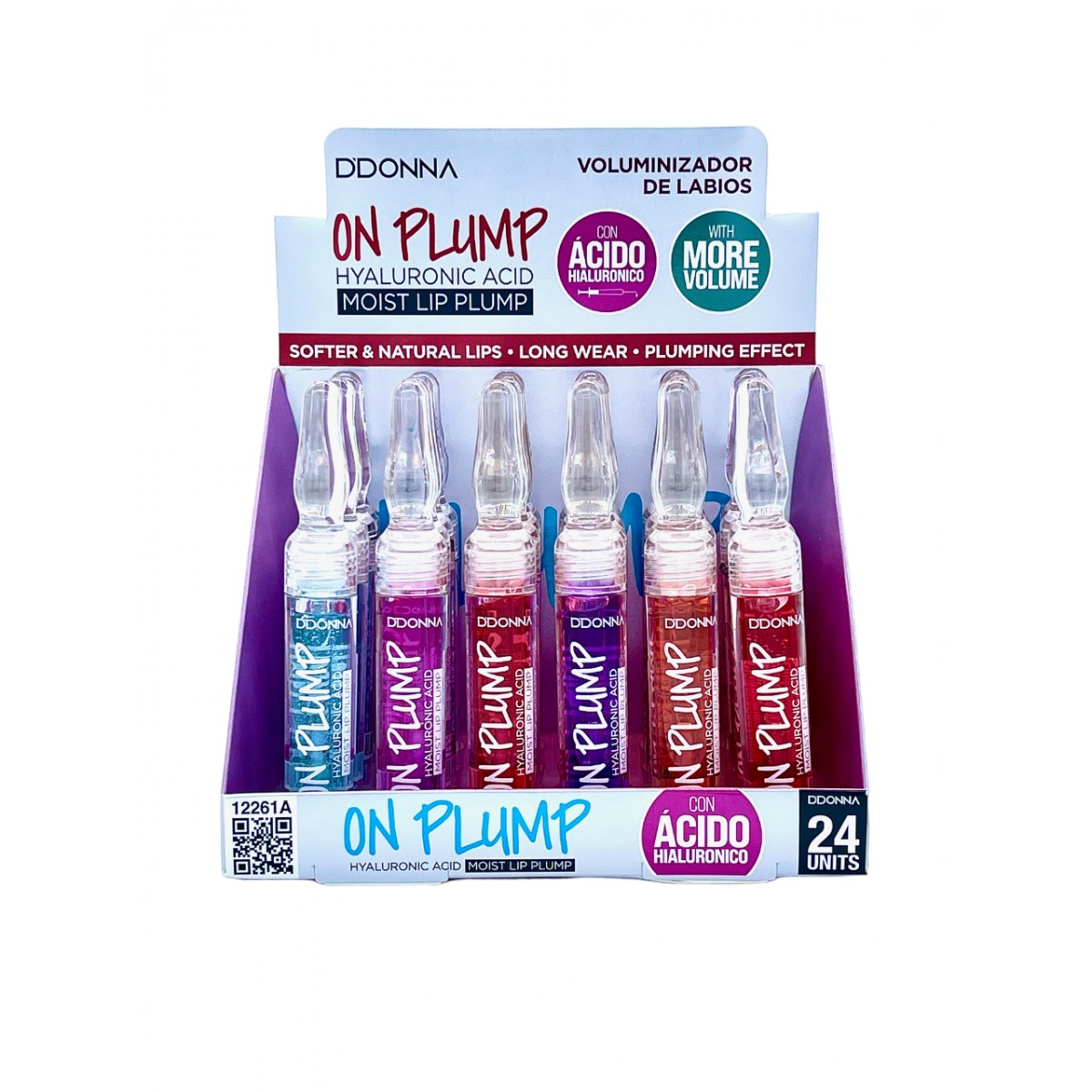 LIP ON PLUMP , enriquecidos con ácido hialurónico, que hidrata y repara tus labios, y que posee un efecto rellenador de arrugas ideal para que tus labios no pierdan su volumen natural con el paso del tiempo.